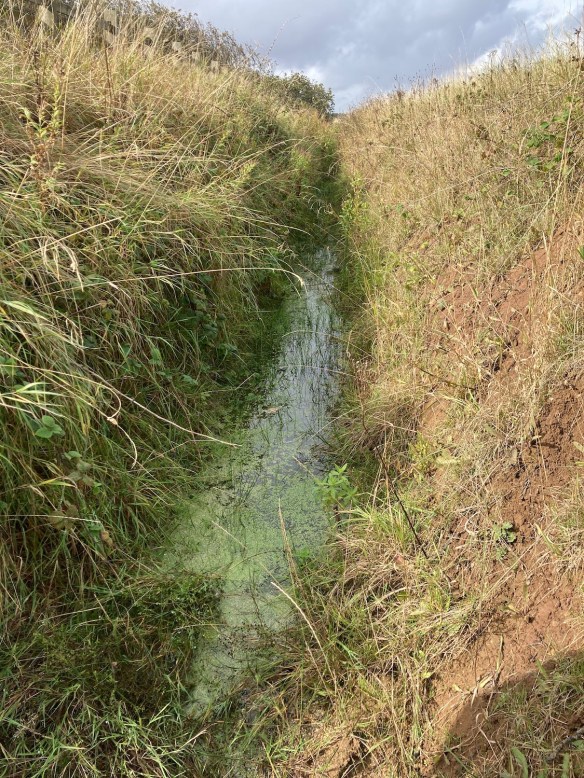 A deep ditch appears and there is no way round it – the only way forward is through, I think someone said, so here goes. Damian scrambles down first to test the resistance of the soggy ground. My rucksack is thrown over onto the far bank so there’s no way back as I gingerly creep down the slippery bank of the ditch, to be unceremoniously shoved up the other side.