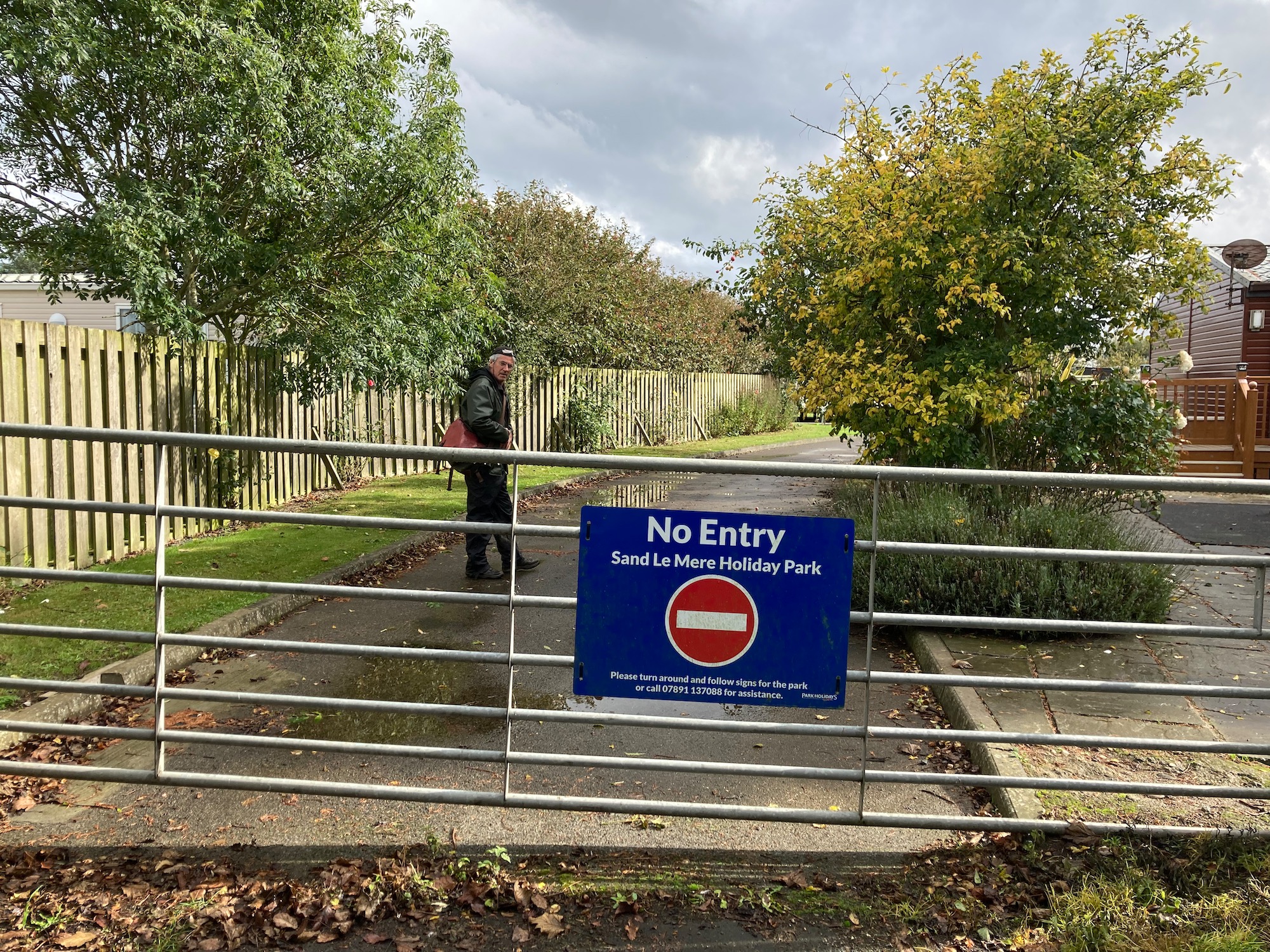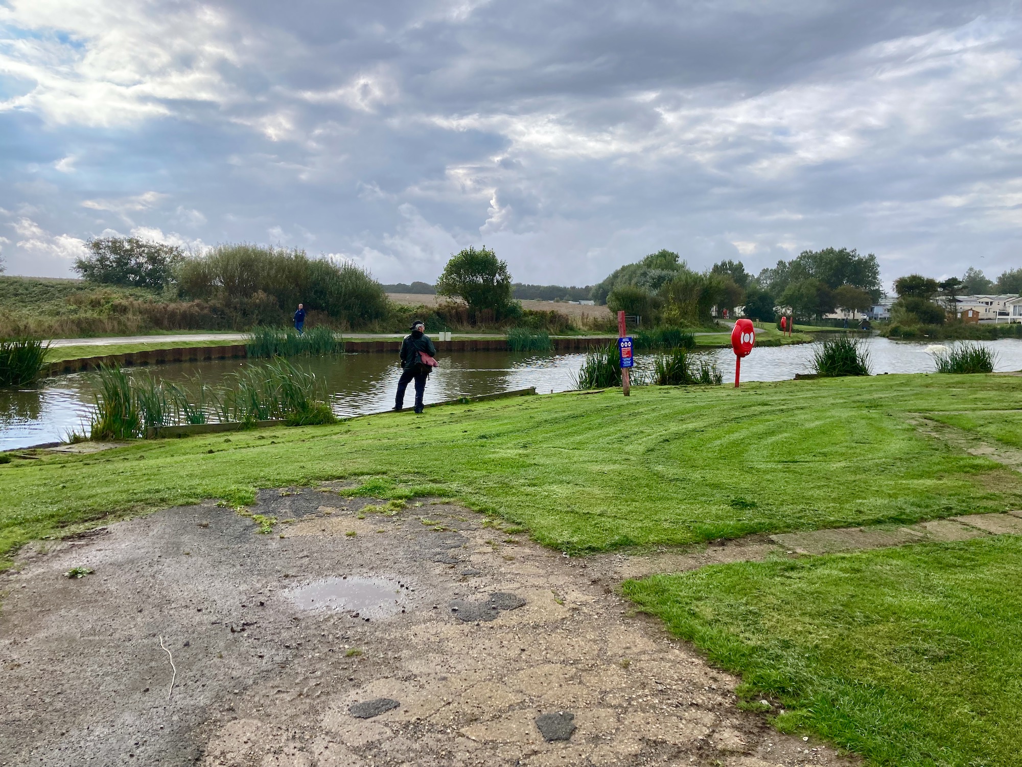 Following instructions from the few holidaymakers that are braving the weather, we are directed down to the fishing ponds where there is access to the beach.