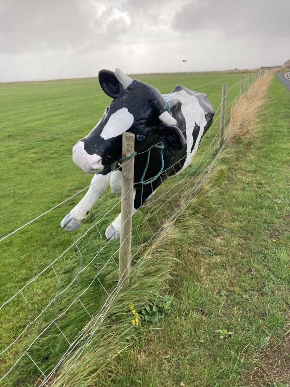 We then head for the minor road that runs south and parallel with the coast, No idea what this cow is advertising but it will need a bit of straightening up when the wind calms down.