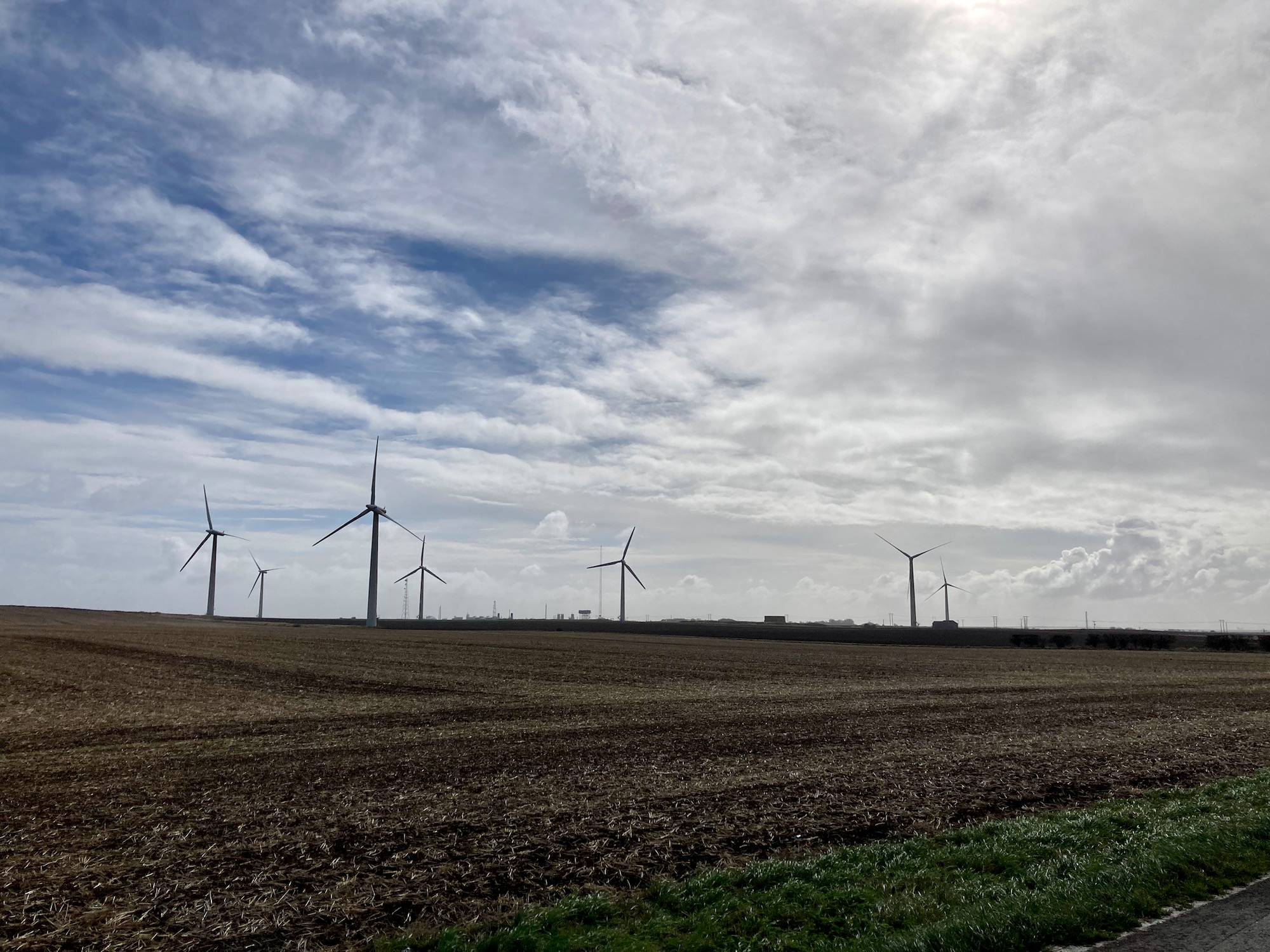 A little further down the road we turn left to head for the coast and work our way through the Out Newton wind farm. The change of direction now means we are being buffeted by the wind from the side and I find myself being blown into the brambles on the side of the road. It is very tiring and I can feel an unreasonable anger rising in me. My mother hated wind and now I can sympathise.
