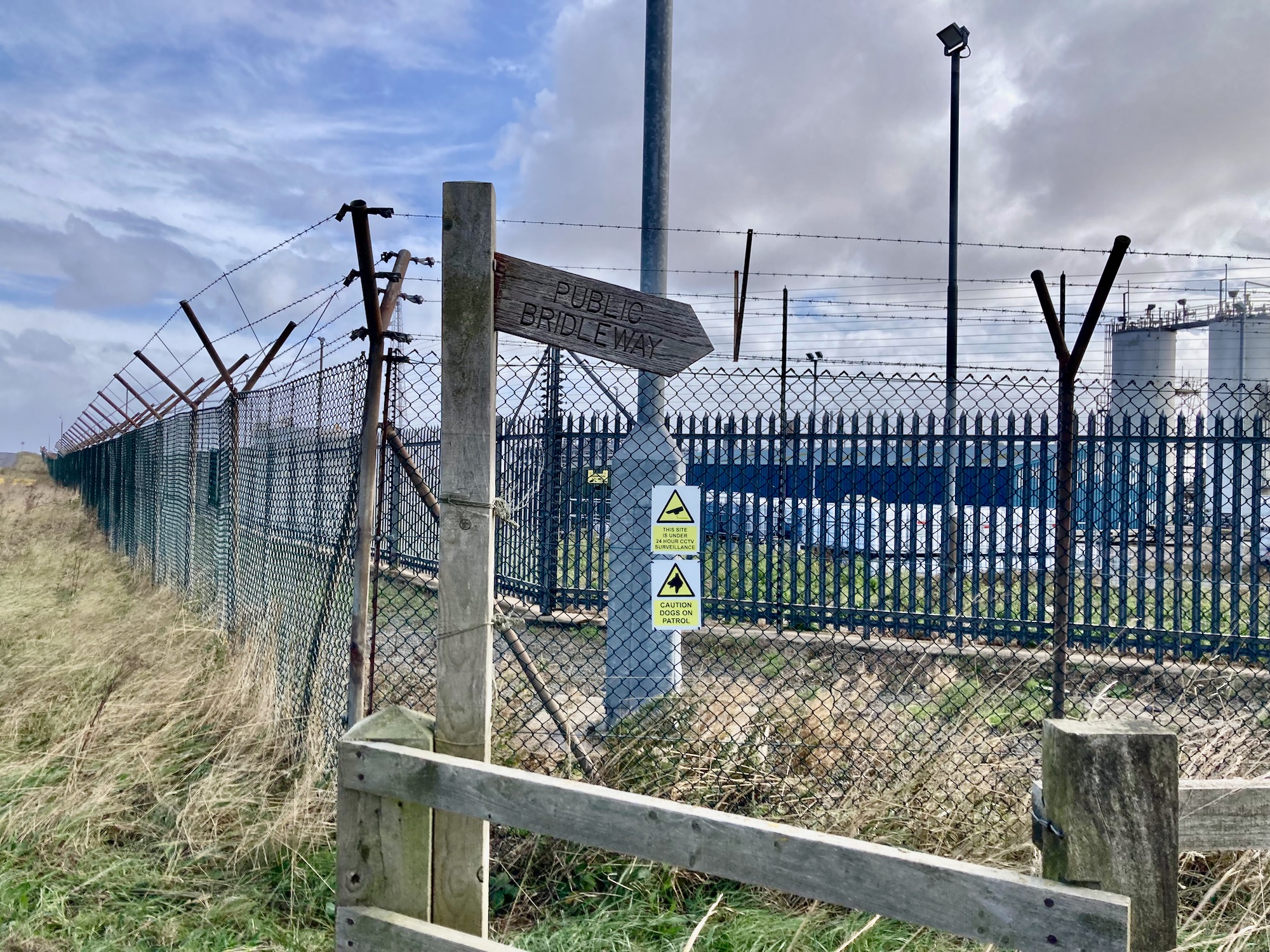 Fortunately we soon turn south again with the wind behind us (I will stop talking about the wind soon) and it is with relief that I see a footpath on the map which will steer us around the huge expanse of Easington Gas Terminal and take us on to the village. The terminal is a massive, heavily guarded affair . and there are close circuit cameras everywhere – we later discover that the site is protected by MoD police officers.