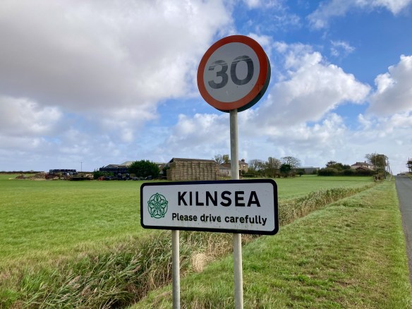 When we reach Easington our goal is to find a bench for lunch – we do so outside the community centre and although it is on the main road into the village we are so hungry we’ll take what’s on offer. Moving on past the church we walk for another two miles before we finally reach Kilnsea.
