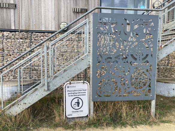 From afar the building looks somewhat dull but on closer inspection it has some lovely features like the decorative metalwork on the staircase, the grass roof and the caged stonework on which the wooden building perches, making the structure more flood resilient. It is also the place to go if you need information about the walks and the local area.