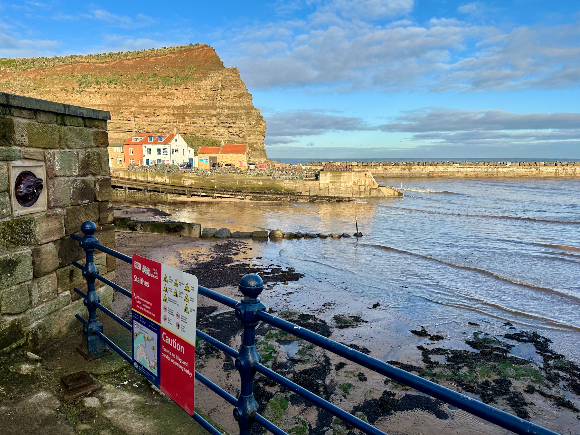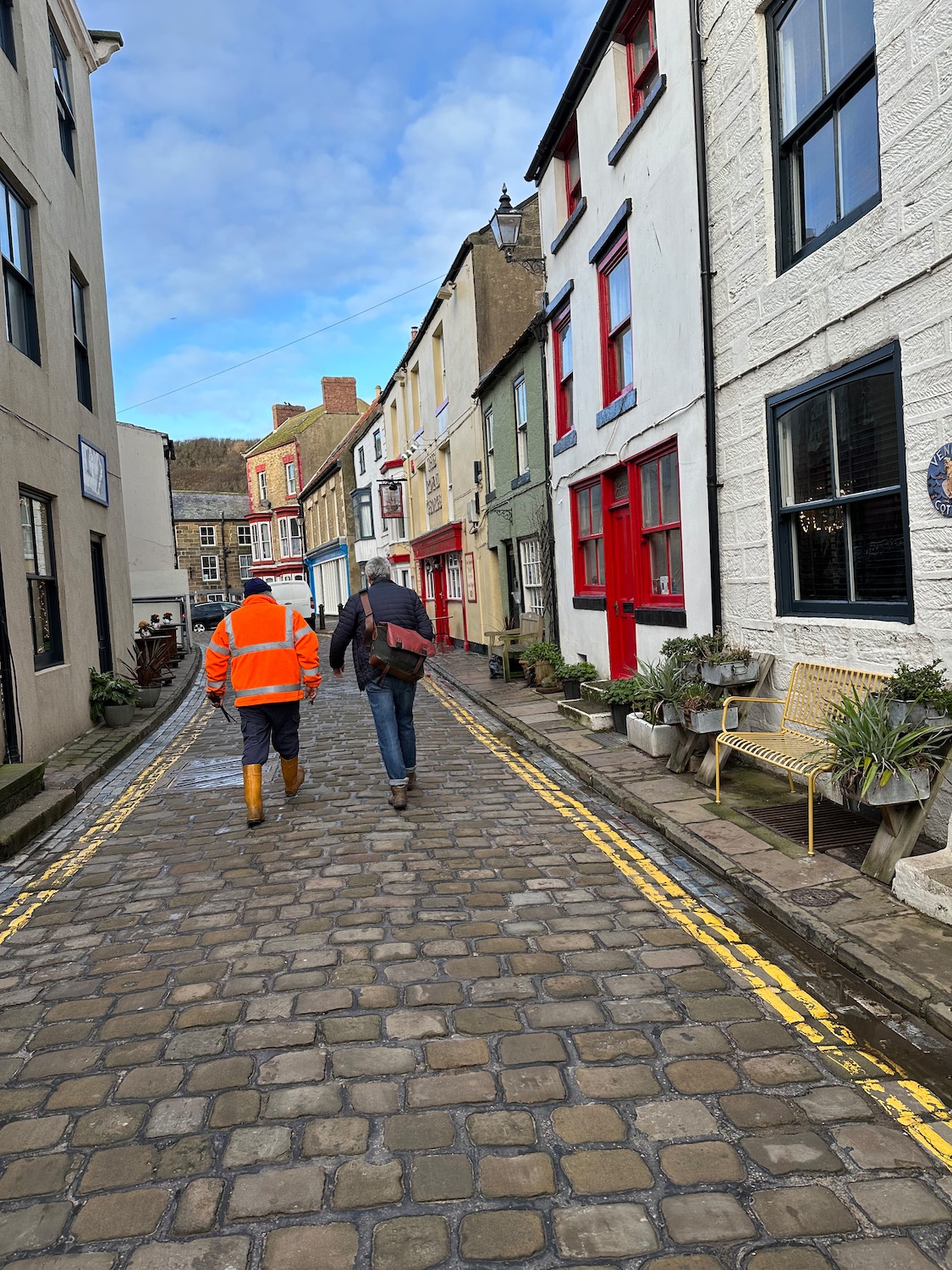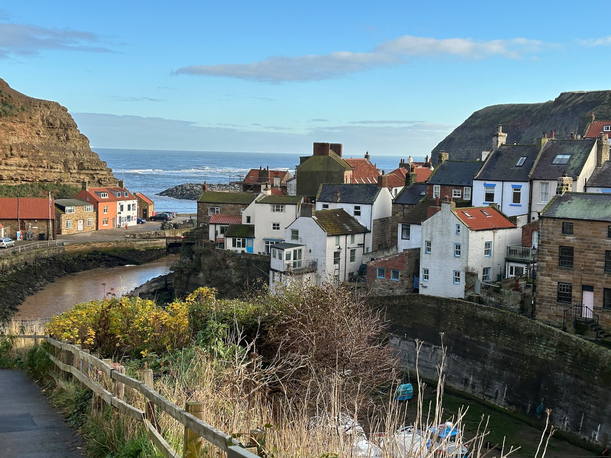 We phone an Uber to take us to Staithes as there is no direct bus. The driver is from Irak and we get to hear a little of his story. Fleeing from the chaos in his country with his family, he managed a string of temporary jobs and eventually embarked on a four year Computer Science course at Hull University. After finishing a Masters, he now hopes to start a PhD. His wife has just recently completed her medical training and is now a qualified GP. Their two children are also planning to study Digital Learning and AI next year. It warms the cockles to meet such a resourceful family, taking refuge in the UK and working so hard to contribute to our society. Strangely enough his English is not great……………but then I am an English teacher and maybe a bit critical..
