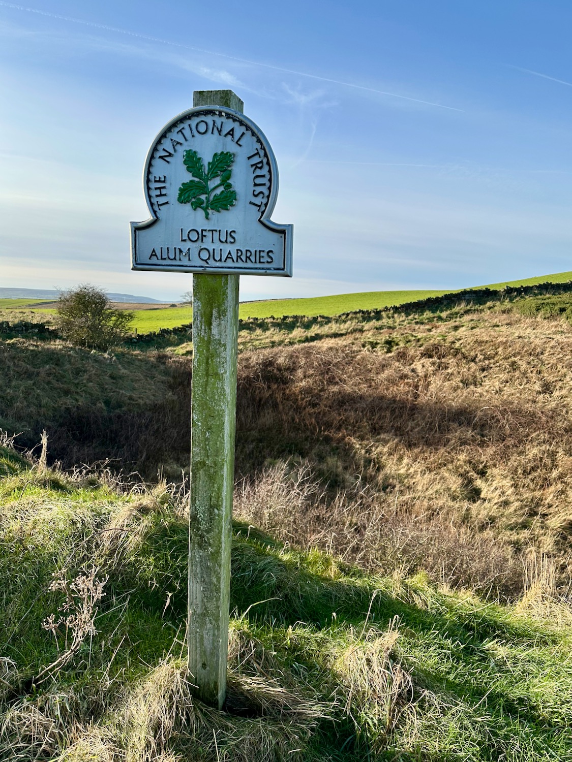 A little later the landscape shows recognisable signs of alum quarrying – grey mounds of what looks like ash where there should be grass – I remember it from the cliffs around Ravenscar.