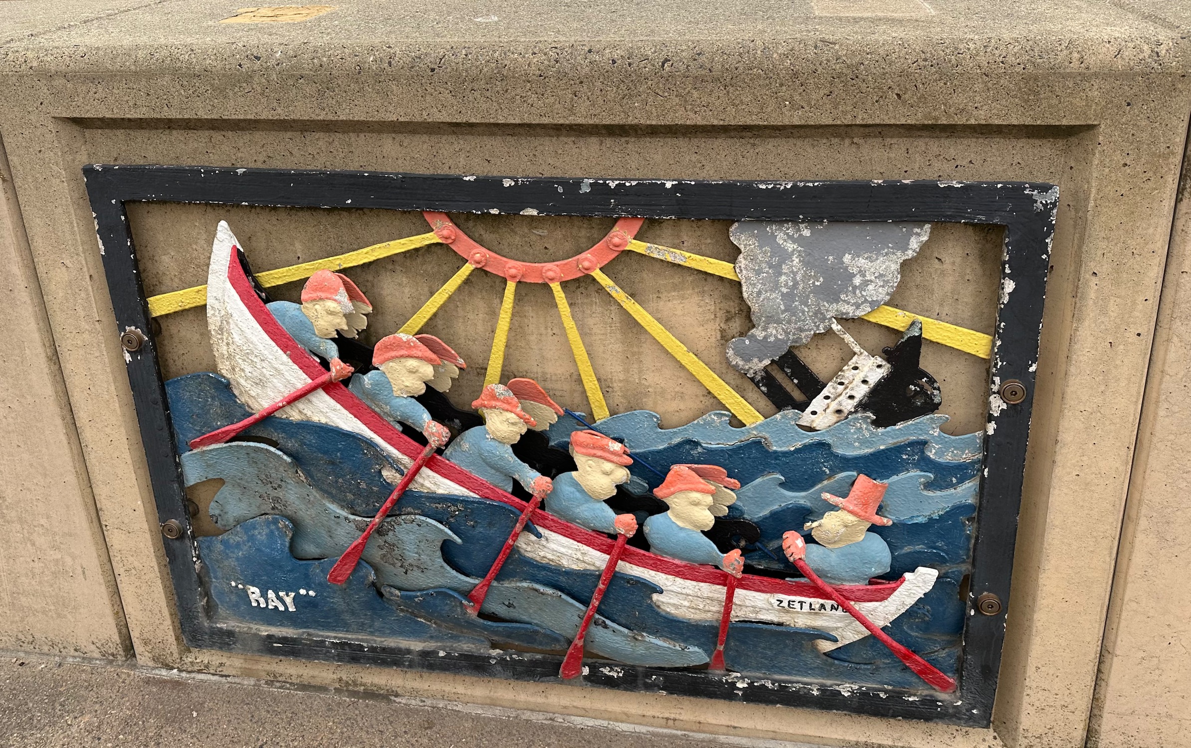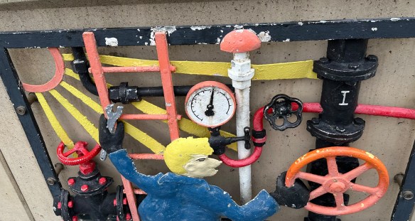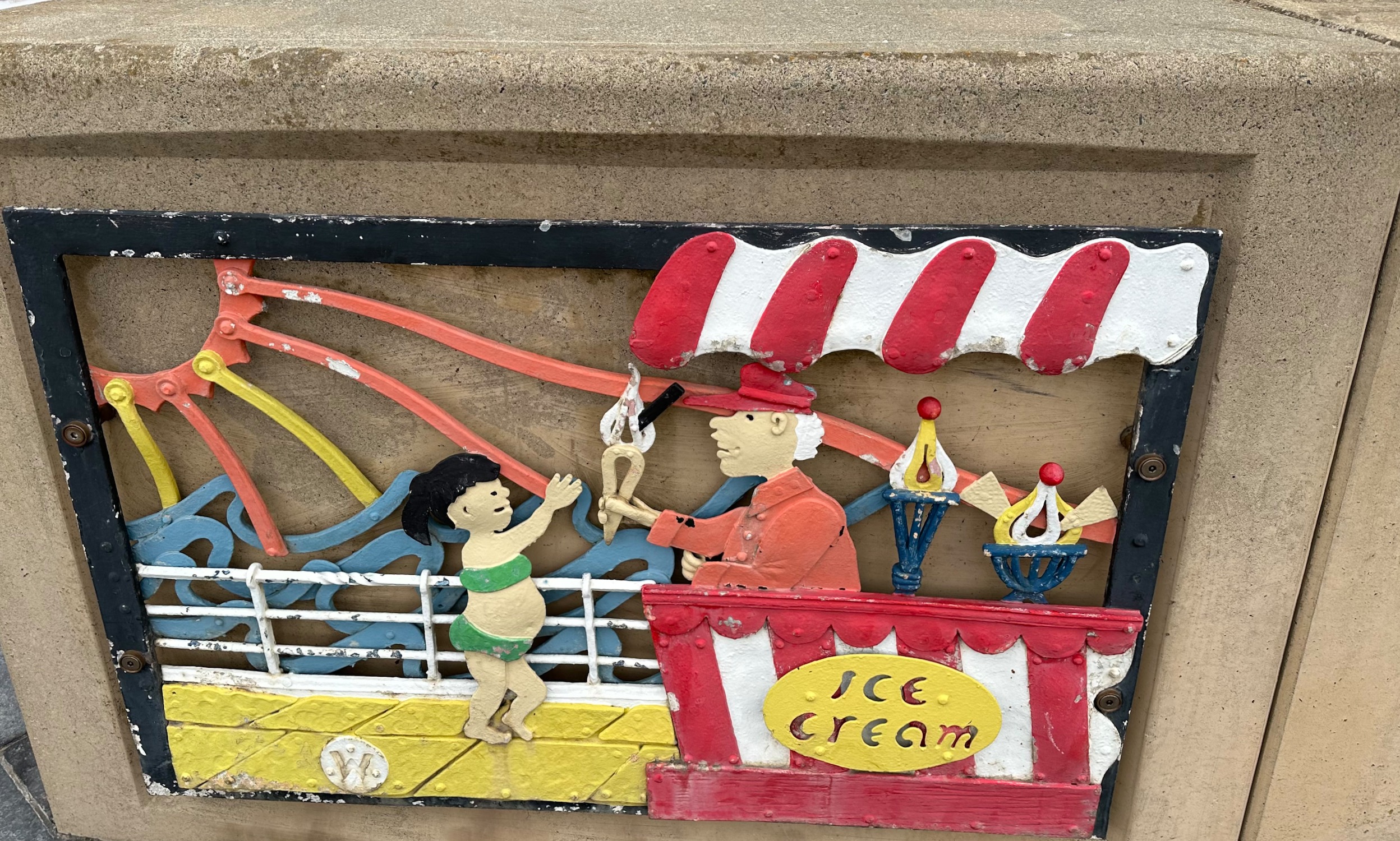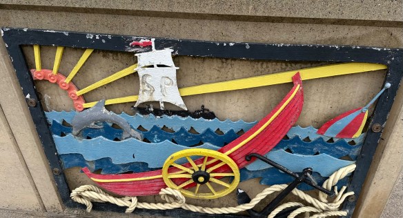 A little further on we meet the first of a series of delightful, brightly painted, metal relief panels, mounted in the 90’s. As well as well known nursery rhymes, there are also those depicting summer holidays on the beach for families from the industrial cities of the north. I can’t stop taking photographs of them but I should have been down on my knees to take the pictures to correct the slant.