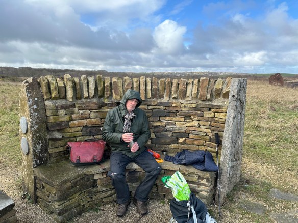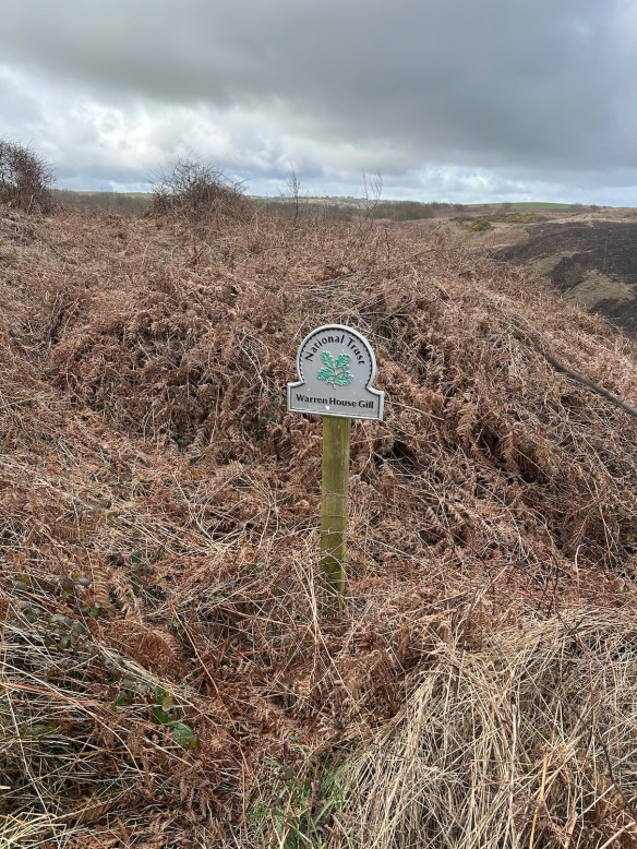 So a dean is a valley and a gill is a small valley – we climb up the far side of Warren House Gill to a pair of steel butterfly wings commemorating the area’s industrial past and find a handy stone shelter to attack our sandwiches and tea.