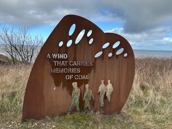 We carry on along the top of the cliffs – this steel representation of a seabird perches beside the path – yet another reference to what were once thriving iron and steel industries.