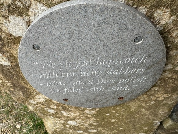 A plaque on on one of the end walls talks about “itchy dabbers” and although it’s easy to surmise what this phrase refers to, I cannot find anything on the net to tell me where this phrase comes from. In my primary school in mid Wales we used small broken slabs of marble – where they came from I have no idea.