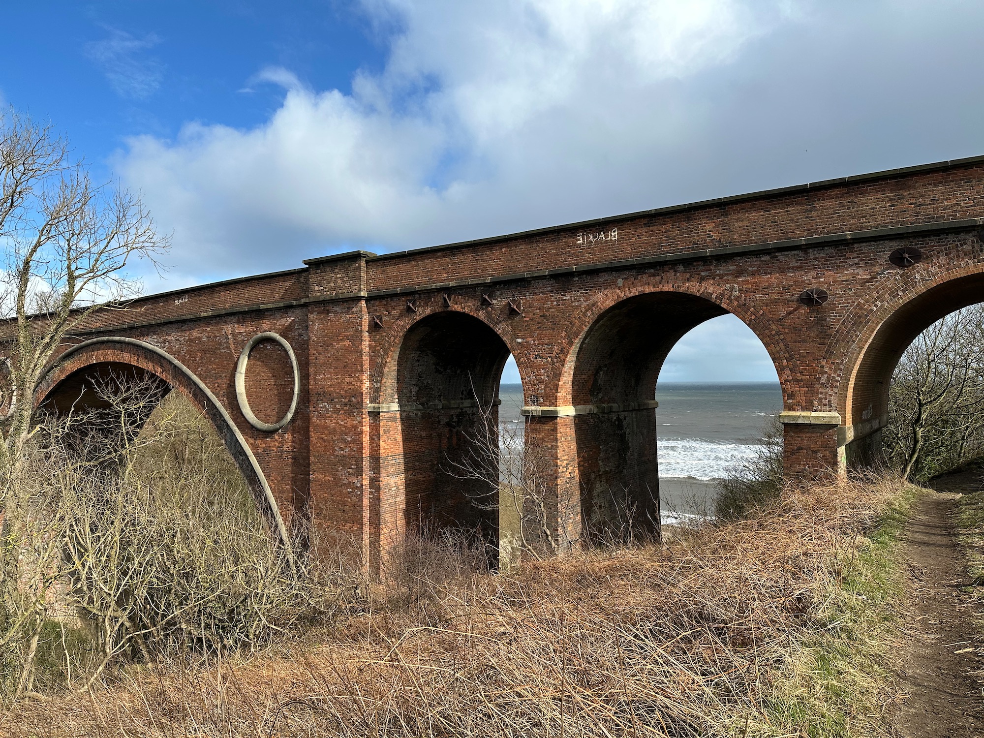 Limekiln Gill is navigated with the help of a footbridge and a ford ,and as we move towards Blackhall Colliery, the wonderful Horden Viaduct rises up over to our right. Built in 1905, the viaduct used to have a footbridge on the seaward side – that must have been an exciting experience for some. Fifty years later the footbridge was taken down after an incident in which a gentleman was stabbed by a lady while crossing the bridge. Such a common occurrence these days, in our towns and cities, but quite unusual in the 50’s.