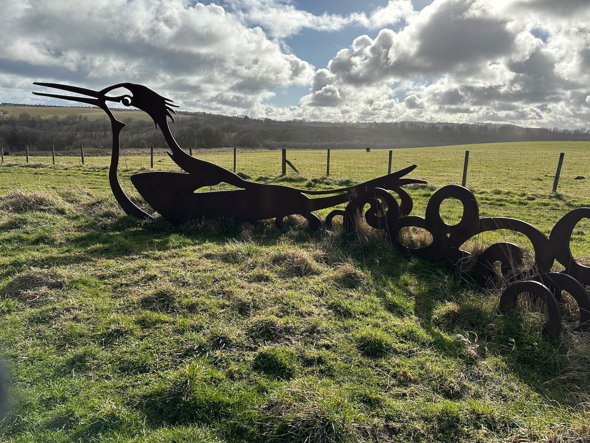 We carry on along the top of the cliffs – this steel representation of a seabird perches beside the path – yet another reference to what were once thriving iron and steel industries.