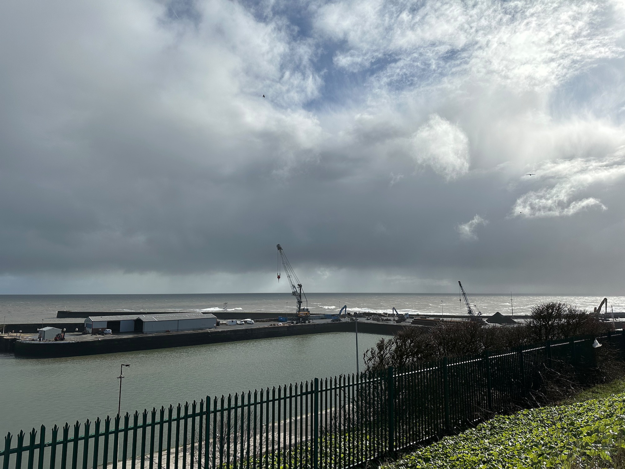 Dark rain clouds are gathering over the harbour at Seaham – could this be the day the rain catches up with us?