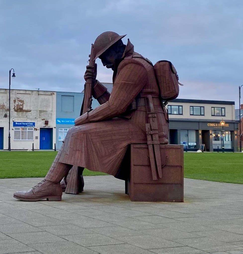 You were lucky with the weather again. The soldier statue is very moving. It is always enjoyable to watch crashing waves, the cliffs are beautiful. Interesting to read about Mary Ann Cotton I think I have heard of her! Glad you got across the impressive bridgexx