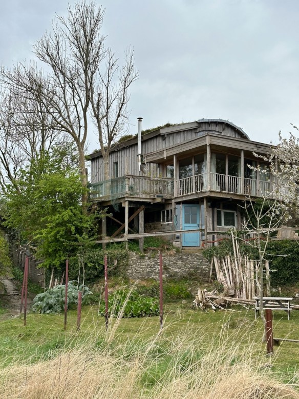 After a mile or so the path ends at a clearing, where some slightly anarchic houses have been put together up on the embankment. They remind me of some of the buildings in Freetown Christiania where I lived for 10 years – and no it wasn’t all sex, drugs and rock and roll. I paid my dues for many years working in the nursery, the cinema and the after school club and also participated in countless meetings and “work days”.