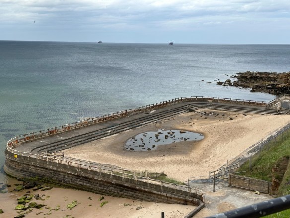 Further up the road we pass what’s left of Tynemouth’s Outdoor Pool. Built in the 1920’s, this concrete tidal pool was extremely popular with those holiday makers who chose to swim in its relatively calm waters, rather than brave the potential dangers of the North Sea. It fell from grace with the advent of cheap holidays abroad – there are plans to restore it.