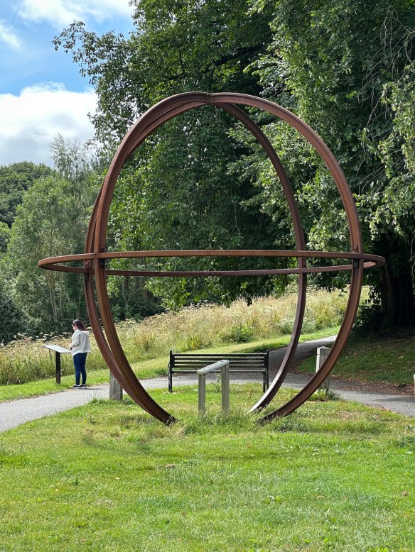 Just before the bridge, stands a giant steel orb on the site of what once was the Bedlington Iron and Engine Works which closed in 1867. The information board tells me that the engine works used to be a world leader in the production of railway lines and locomotives. Apparently the first train out of Kings Cross Station was hauled by a Bedlington locomotive.