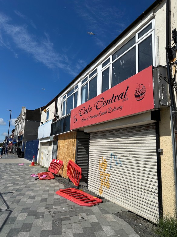 The streets in Blyth look depressingly familiar but we do manage to find an art cafe housed in a Victorian arcade for a cup of tea and a cake.