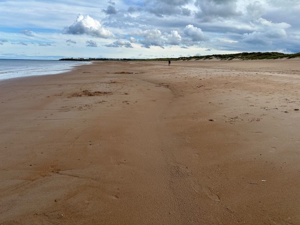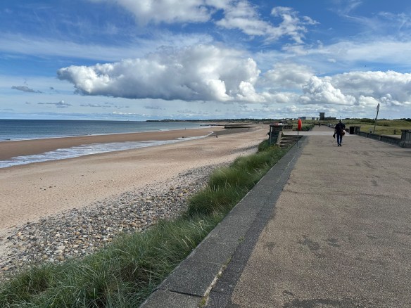 The friendly bus driver in Blyth has the time and energy to correct my Franco pronunciation of Cambois – “Camess” he hisses – who would have guessed that? Apparently, the most likely origin of the word is from the Gaelic word “cambas” meaning “bay” or “bend in a river”. We walk down to yet another beautiful stretch of golden sand – with no-one on it
