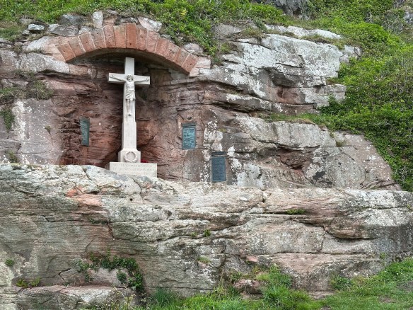 On the way up we pass a stone cross set into the cliff – a reminder that the castle was once the home of St.Oswald.