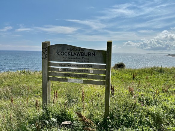 We spend some time trying to find a place to park on the narrow minor road, having just been told in no uncertain terms that we cannot park in the big EMPTY yard outside the cottage. But just down the road we slide into a layby overlooking Cocklawburn Beach and strap on our boots.