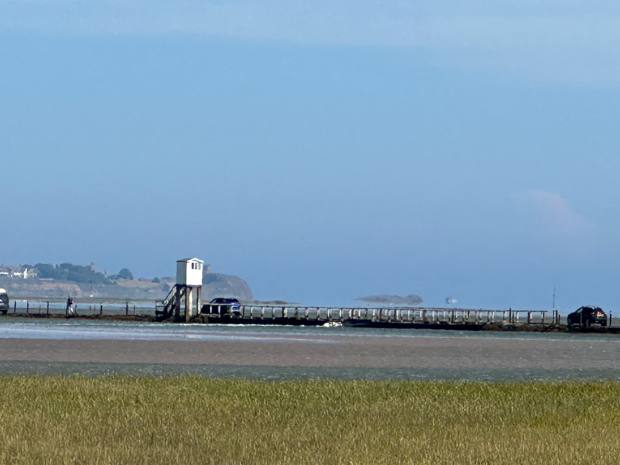 Perched high above the causeway is one of the two refuge huts which may save you from a cold watery fate.