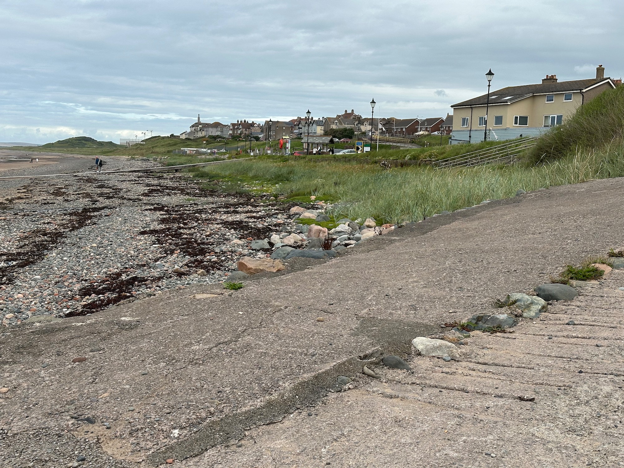 We climb upwards which gives us a view of the beach and realise that the bohemian site we walked though at Braystones, actually continues along the shore but has morphed into a stretch of solid suburban houses.