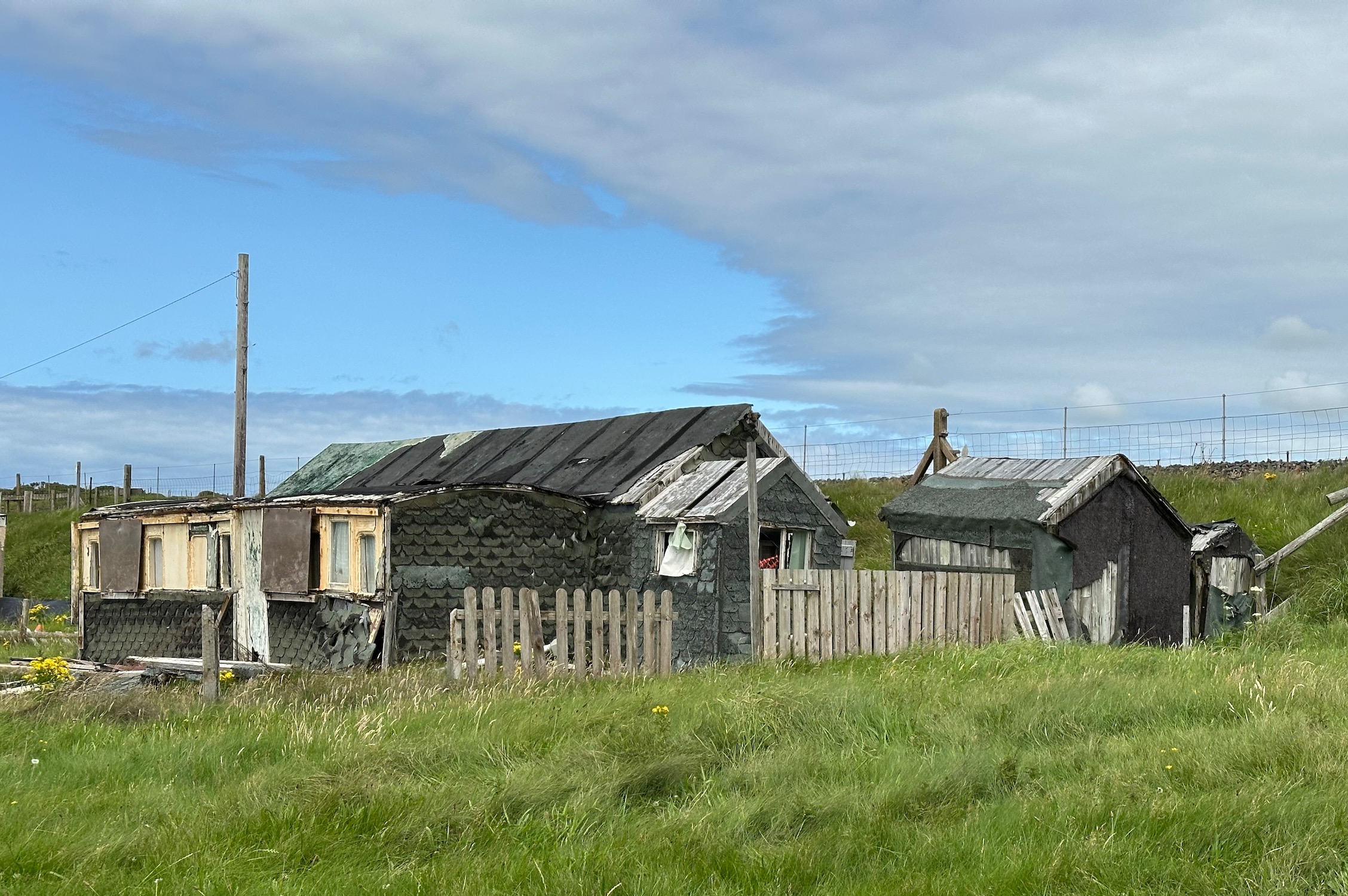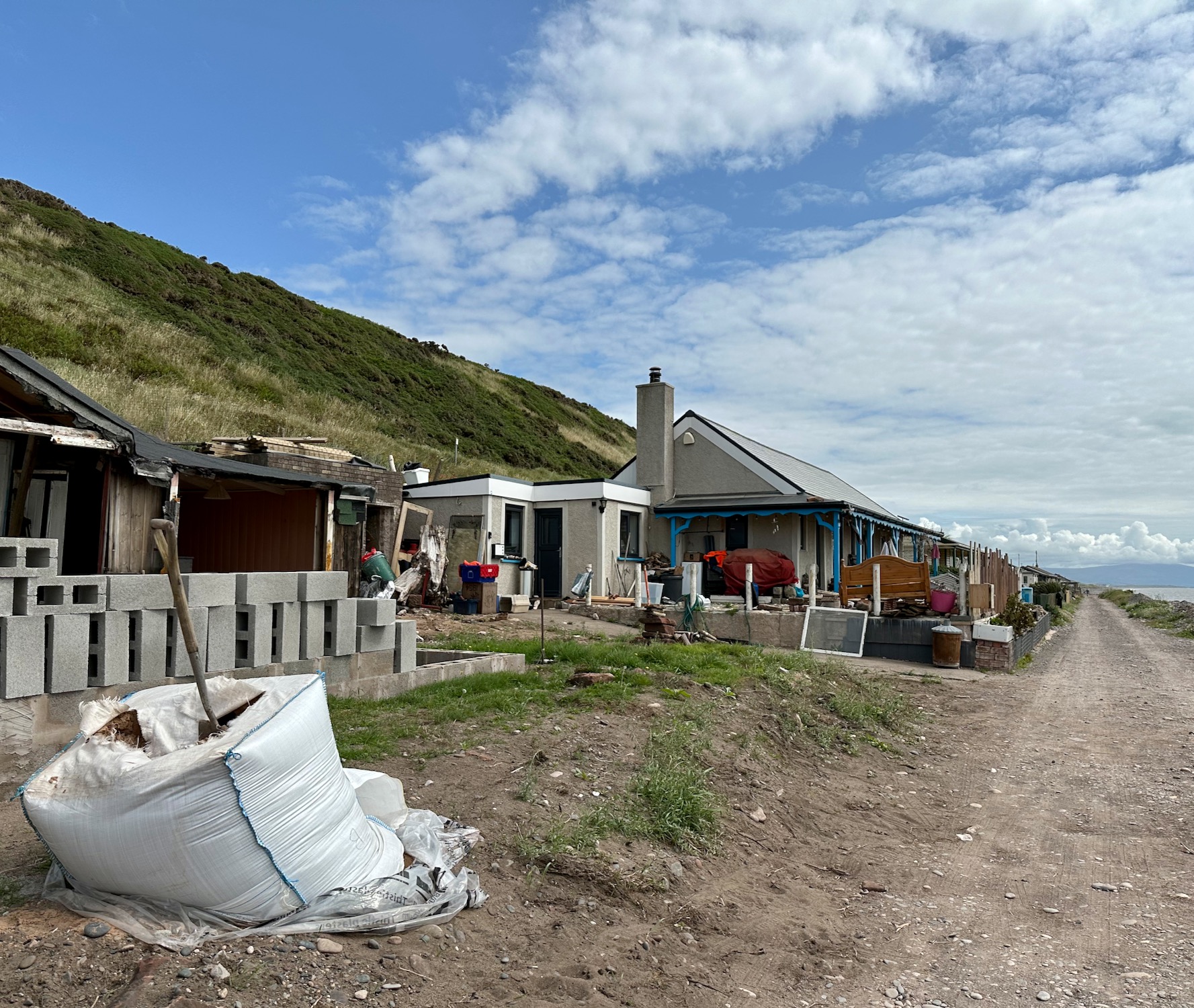 1. Yes – these are also in quite a precarious position but there is a solid bank of shingle close to the water line which may protect them from high tides. Up until recently the only water supply was from springs flowing out of the cliffs, electricity from generators and solar panels – gas in bottles. There were also a few dodgy dogs.