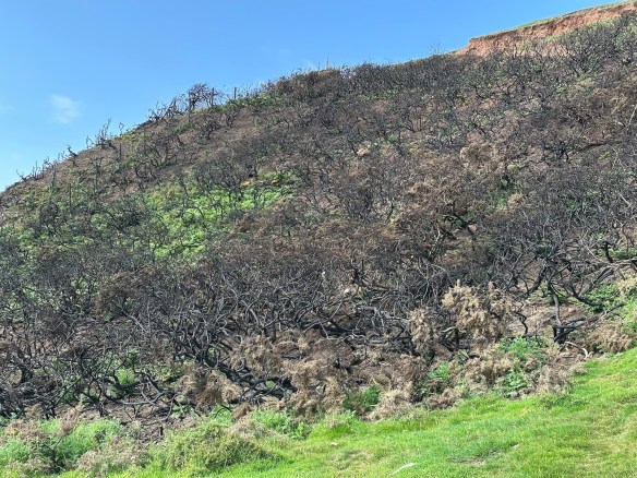 We continue to move upwards through an area of burnt bushes deliberate no doubt – to improve the health of the eco-system. The practice is known as prescribed burning.