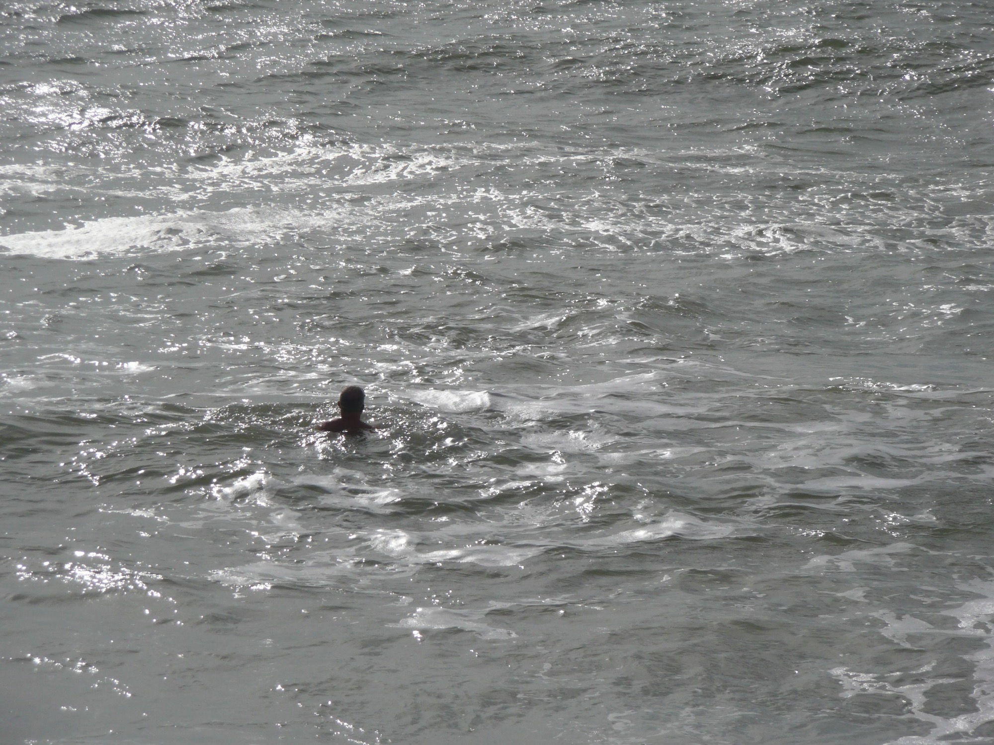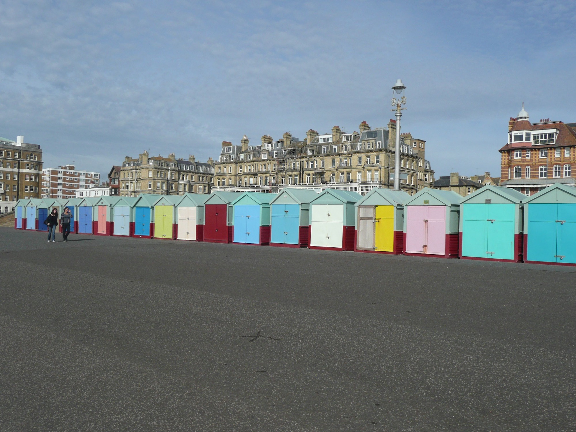 Squinting in the sun I walk past the colourful beach huts at Hove, a few souls swimming in the creamy surf.